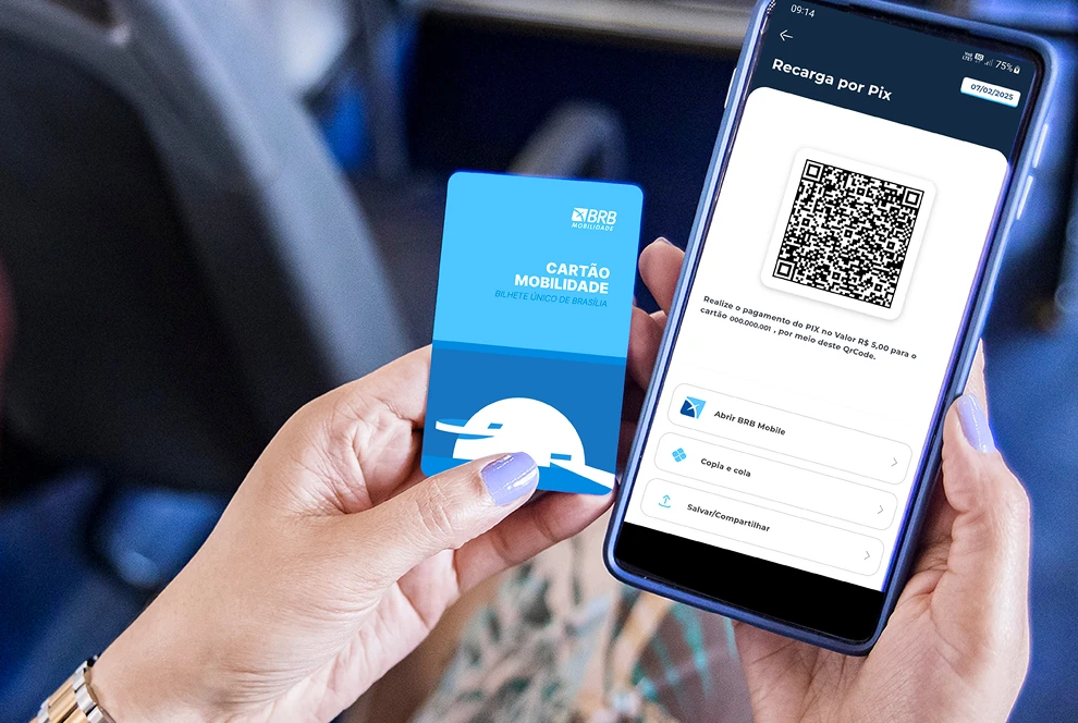 Com o Aplicativo BRB Mobilidade o seu embarque fica muito mais rápido! Basta acessar o aplicativo, escolher o valor que deseja recarregar seu Cartão Mobilidade e logo após selecione o meio de pagamento por PIX e em poucos minutos os seus créditos estarão disponíveis para uso.